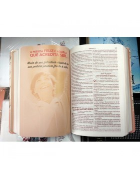 Bíblia de estudo feminina, semi-luxo com capa flexível e letra grande.