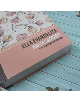 Delicada, bela, inspiradora. Numa palavra, feminina. Esta linda edição da Bíblia, com o consagrado texto da tradução de João Ferreira de Almeida e encartes contendo mensagens, curiosidades e reflexões direcionadas para o público feminino, a Bíblia Sagrada Ella Evangeliza explica o plano da salvação e traz versículos selecionados para as diversas situações da vida da mulher. Com esta edição, qualquer leitora, mesmo quem não esteja familiarizada com a leitura bíblica regular, poderá conhecer as Escrituras através de ferramentas como cronologia, linha do tempo e resumos dos 66 livros bíblicos, entre muitas outras ajudas.