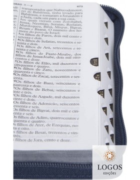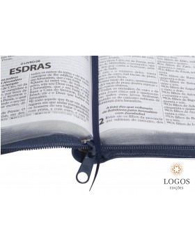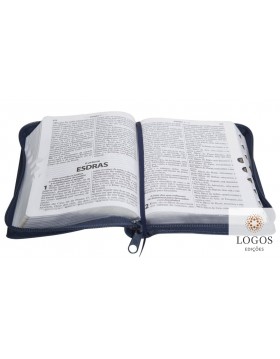 • Bíblia Sagrada com capa em couro sintético, fecho de correr e índice digital - azul. 7898521808112