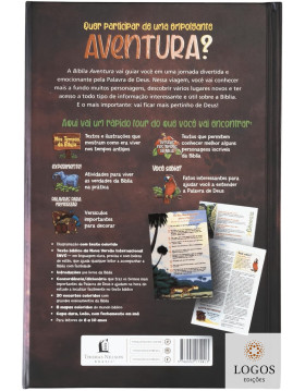 A Bíblia Aventura vai guiar-te através de uma jornada divertida e emocionante pela Palavra de Deus. Nesta viagem vais conhecer mais a fundo muitas personagens, descobrir vários lugares novos e ter acesso a todo o tipo de informação interessante e útil sobre a Bíblia. E o mais importante: vais ficar mais perto de Deus! Aqui tens um roteiro do que vais encontrar: