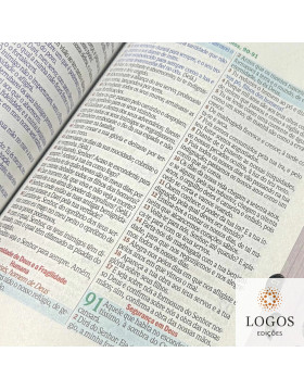 Esta Bíblia também tem índice digital nas beiras, facilitando a procura dos livros bíblicos para quem que tem dificuldade em encontrar livros menores, como Sofonias, por exemplo.