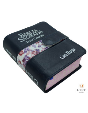 • Bíblia Sagrada - ARC - com Harpa Avivada e Corinhos - letra grande -  texto colorido - carteira com caneta - azul. 49738