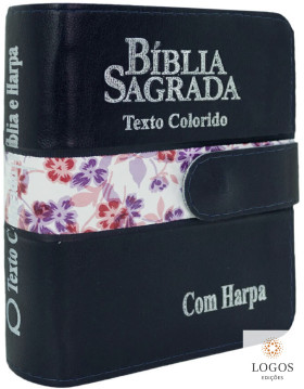 Bíblia Sagrada - ARC - com Harpa Avivada e Corinhos - letra grande -  texto colorido - carteira com caneta - azul. 49738