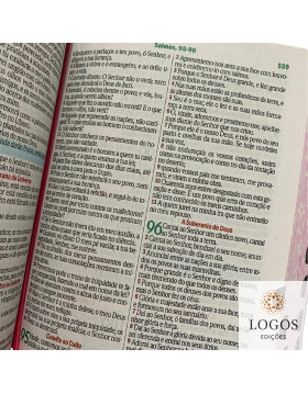 Bíblia Sagrada - ARC - com Harpa Avivada e Corinhos - letra grande -  texto colorido - carteira com caneta - pink. 49736