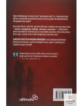 Nesta obra clássica, John Stott apresenta definições cuidadosas de cinco termos-chave — missão, evangelismo, diálogo, salvação e conversão — e, biblicamente, oferece um modelo de ministério para as necessidades espirituais e físicas das pessoas. Para o autor, a missão cristã é tanto evangelização como acção social.
