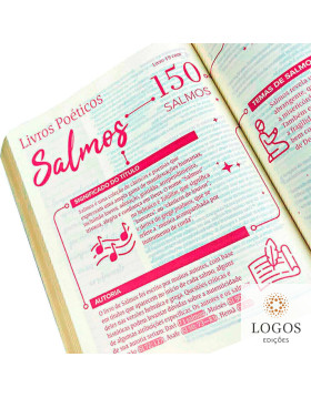Desfrute de cada linha com a certeza de que, enquanto lê e medita na Palavra, o Pai permanece ao seu lado. Que esta Bíblia seja a sua amiga íntima e lhe acompanhe na jornada mais importante de sua vida: conhecer a Cristo.